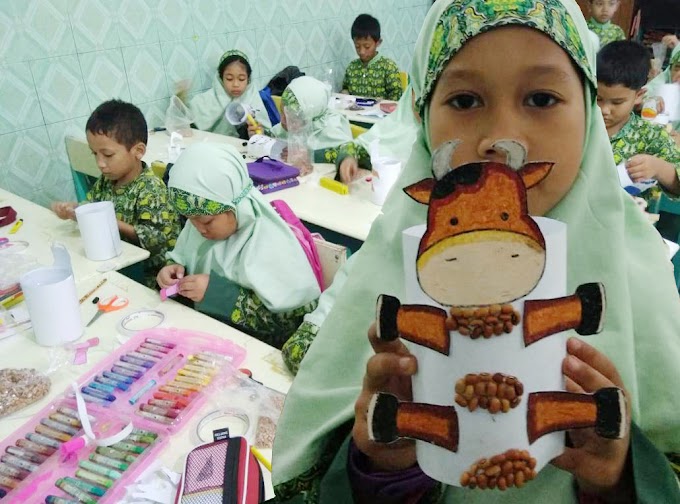_"Kreasi kali ini adalah tempat pensil sapi sebagai gambaran hewan kurban. Dipilih bentuk sapi karena dilaksanakan di bulan Dzulhijah dan menjadi penyemangat anak anak belajar tentang kisah kisah yang berkaitan dengan Idul Adha," tutur Leli Firli Rohmani, S.Psi, guru tematik kelas 2C, saat menyampaikan pembelajaran tematik.
