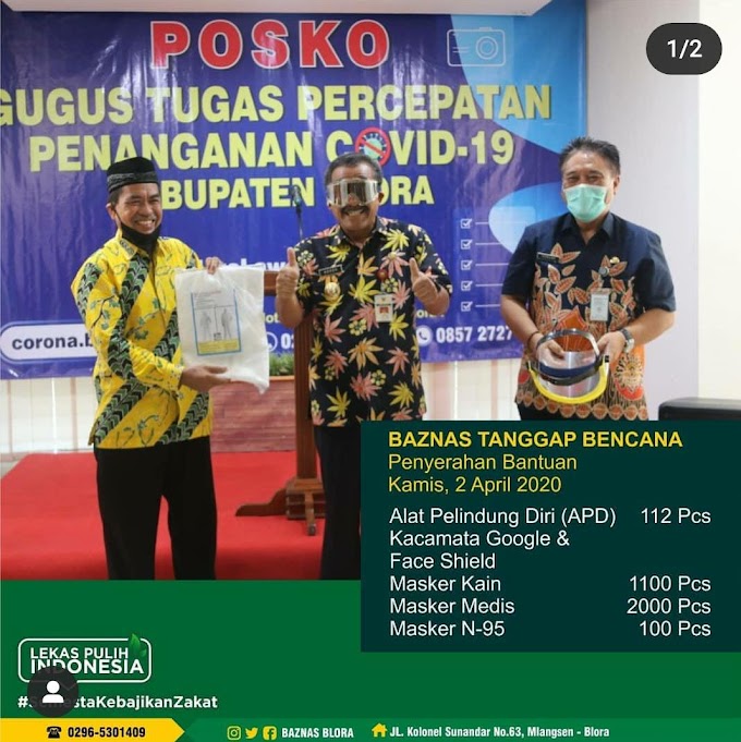 Namun kini, saat wabah Covid 19 melanda Indonesia, termasuk Blora. Untuk mendukung program Gugus Tugas Percepatan Penanganan Covid 19 di Kabupaten Blora, peran BAZNAS juga sangat strategis, membantu pengadaan APD untuk tenaga medis di Fasilitas Kesehatan.